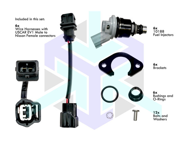 • Included Hardware: 6 Wiring Harness Connectors, 6 Fuel Rail Caps, 6 Fuel Rail Adapters, 6 Insulators, 6 O-Rings